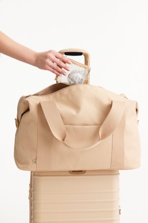 Relationships are complicated. your overnight bag doesn’t have to be. From situation-ship to an extended weekend stay our BÉISic duffle doesn’t judge. To the outside eye we kept it minimal (no one needs to know what you’re up to) but in reality. this bag has a lot going on. With a removable shoulder strap. key leash. trolley passthrough. and a wipeable interior this duffle allows you to choose your own adventure.