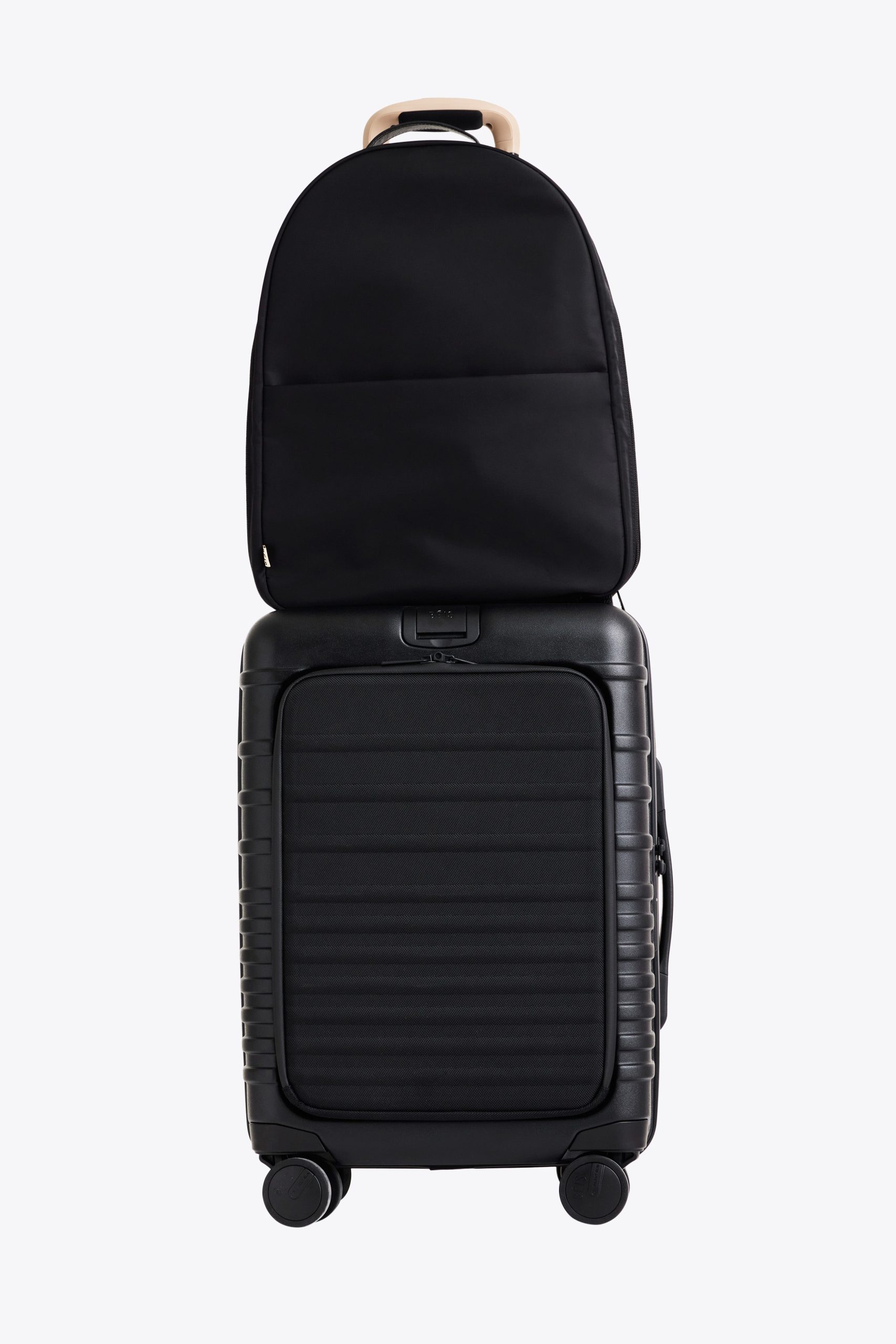 We went back to basics with an on-the-go lifestyle in mind when we designed the Commuter Backpack. It’s not just the sleek and stylish simplicity of a vegan leather handle and woven label details. This bag serves as a pre-work checklist for even the busiest days: interior organization for your computer. a front zipper pocket and elastic key leash to keep track of all the little things. plus a hidden water bottle pocket on the side (our personal reminder for you to stay hydrated!). It’s a traveler’s dream. combining the comfort of contoured straps with our staple trolley pass-through that doubles as a pocket for wherever work (and life) takes you next.