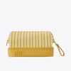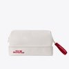 A spill-proof bag for all the bottles. tubes. jars and sprays your getting-ready routine requires. What we love most about this kit—besides its pair of organizational compartments—is the clever loop to hang from towel hooks so you can keep all your lotions and potions from falling off that tiny hotel vanity situation.