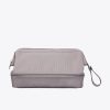 A spill-proof bag for all the bottles. tubes. jars and sprays your getting-ready routine requires. What we love most about this kit—besides its pair of organizational compartments—is the clever loop to hang from towel hooks so you can keep all your lotions and potions from falling off that tiny hotel vanity situation.