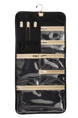 Every practical packing person needs a place to organize their jewelry. This organized packing essential keeps necklaces untangled. smaller. delicate jewelry in view and protected and has enough space for your favorite chunky. statement pieces. Lined with a peach skin microfiber that is gentle enough for your fine jewelry and clear windows to ensure you will never loose even the tiniest stud. Folds neatly into your luggage and hangs from a closet or towel bar for displaying and ease of accessorizing on-the-go.