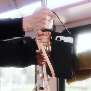 We’ve all had that moment: you’re running a few minutes late and somehow your ID grew legs and walked off without you noticing. That’s why we got to work helping you get to work and came up with a polished and perfectly-sized crossbody for all the things you shouldn’t have to think about keeping track of. With a PVC ID slot and vegan leather trim. a credit card pocket. and even space for your phone. it’s the ideal piece to toss in your bag or wear on its own — just clip on the adjustable strap.