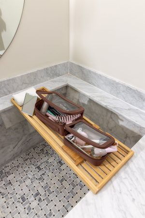 It’s clear (literally): this perfect TSA approved toiletry bag is the missing piece in your luggage collection. Made to nest within each other for easy storage. this cosmetic travel bag was designed for when your plans are a little up in the air — you never know when you’ll need a removable standing mirror for an in-flight touch up. It’s the perfect size for all of your bottles and business. plus the inner lining is coated for real clean beauty. Your fear of turbulence is valid. but don’t be afraid to shake up your travel organization routine.