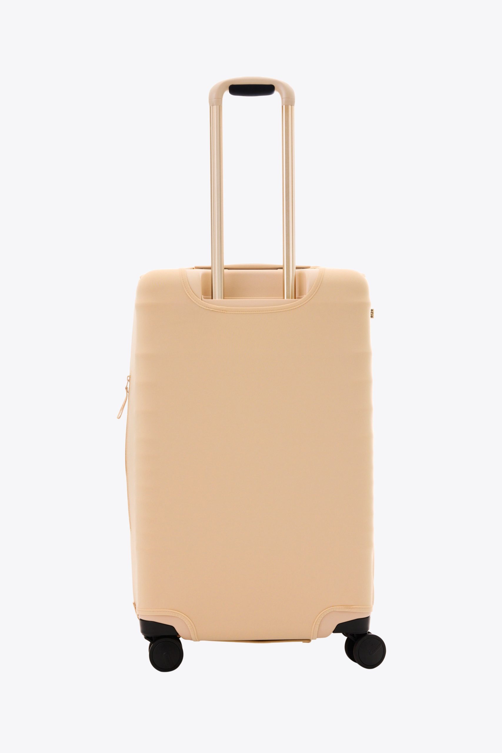 Keep your suitcase protected with a machine-washable luggage cover custom-crafted to fit your BÉIS Medium Check-In Roller size. Made from a lightweight and durable stretch material. this cover provides top-tier protection from dirt. scuffs. and scratches — plus. it’s easier than ever to slide onto your suitcase then fold up and store later. Yep. we’ve got you covered.