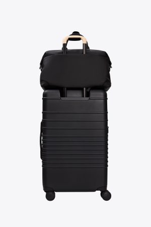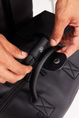 An ode to the classic duffle. with a modern luxury twist. This is the perfect vegan leather bag for elevated travel or everyday wear. We’ve innovated a staple silhouette to feature the finest of transformative function: this cactus leather duffle not only looks luxurious. but also doubles as a tote based on how you choose to secure the snap-down zippers. With a concealed trolley pass-through. debossed details. and custom-molded hardware. you no longer have to choose between designer style and durable features.