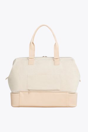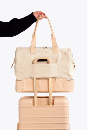 We designed this bag to take the hassle out of packing for the weekend or whichever days you’re away. Seriously. this tote’s easy-access opening makes getting everything in and out a breeze (no flashlight required). Plus. the bottom compartment is designed to keep your shoes. toiletries and travel essentials separate—you can even stash a hair dryer in there. Bonus points: there’s a zipper-pocket on the back that becomes a trolley sleeve so it fits over your luggage handle. Say Hello to your new favorite Carry-On Travel Bag.