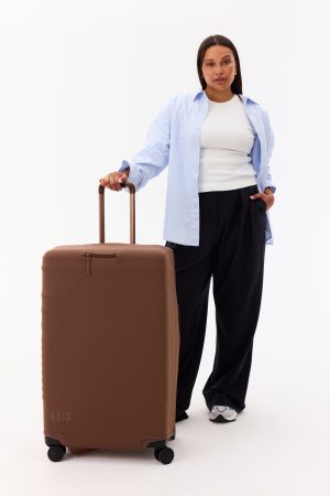 Keep your suitcase protected with a machine-washable luggage cover custom-crafted to fit your BÉIS Large Check-In Roller size. Made from a lightweight and durable stretch material. this cover provides top-tier protection from dirt. scuffs. and scratches — plus. it’s easier than ever to slide onto your suitcase then fold up and store later. Yep. we’ve got you covered.