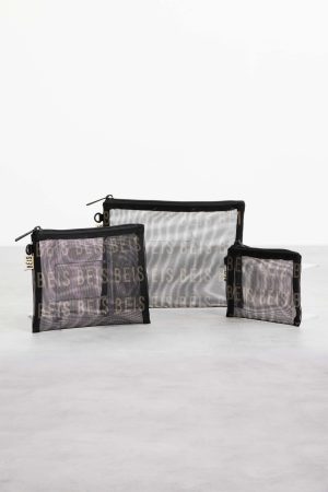 Too big. too small and jusssttt right! No one. not even you. will be losing all those little bits and bobbles when they are organized in this handy set of three. Made of mesh. so they are just the right amount of see-through and a d-ring that makes them easily clip-able into any BÉIS bag with key leash (hint ALL of them). we are setting you up for organizational success here! The interior of your bag will rejoice!
