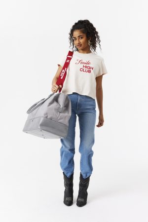 Made in collaboration with Lonely Ghost. Give any BÉIS bag a little LONÉLY AIR love. Featuring statement collaboration graphics. these detachable + adjustable straps are the perfect way to customize your bag and add a little pop of color!