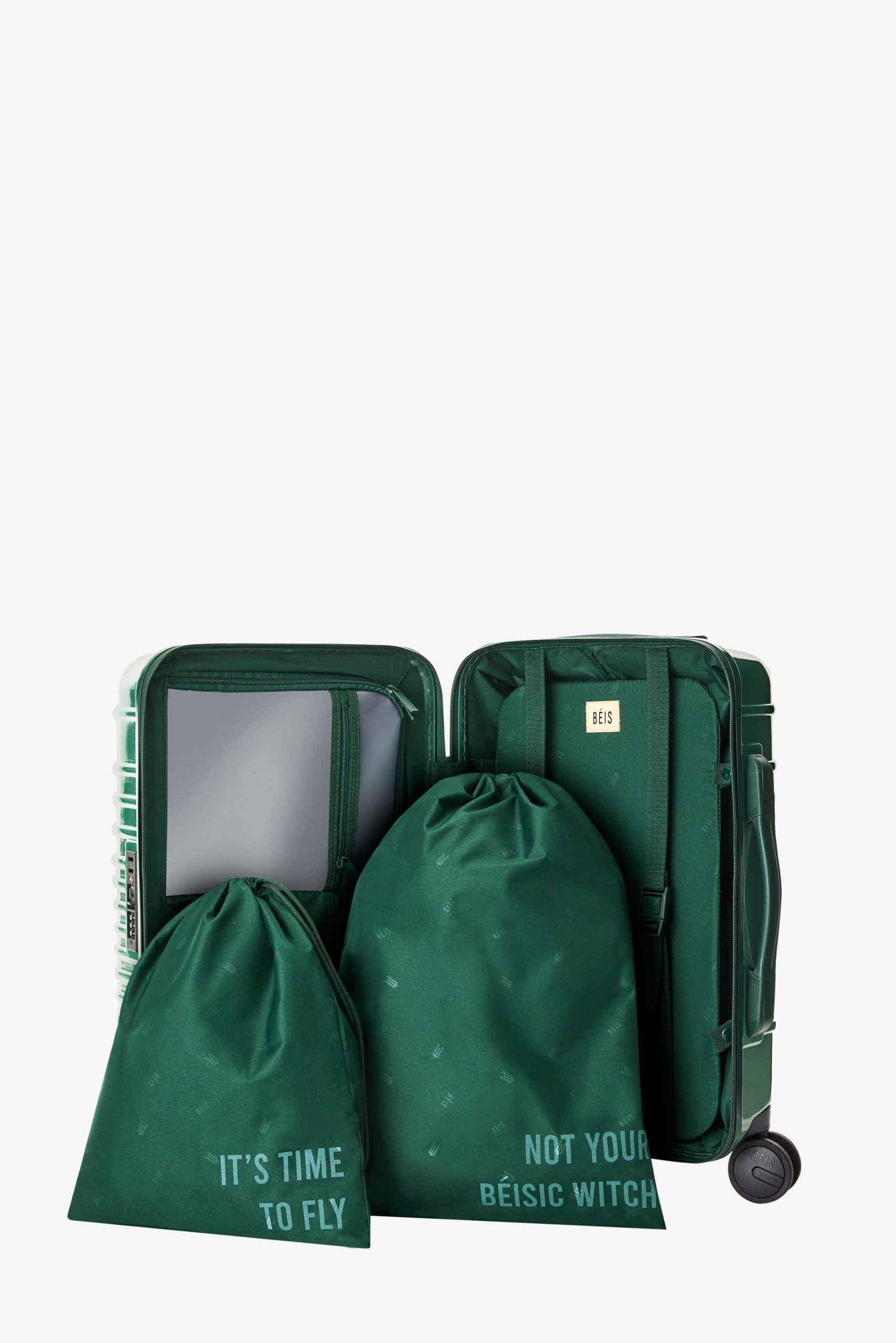 These bags defy gravity! Made to fly. our award-winning roller is crafted with a durable hard-shell exterior. smooth-rolling 360* wheels. and a cushioned silicone trolley handle. It’s known and trusted for its sleek design. and innovative organization features. BÉIS Limited Lifetime Luggage Warranty included.