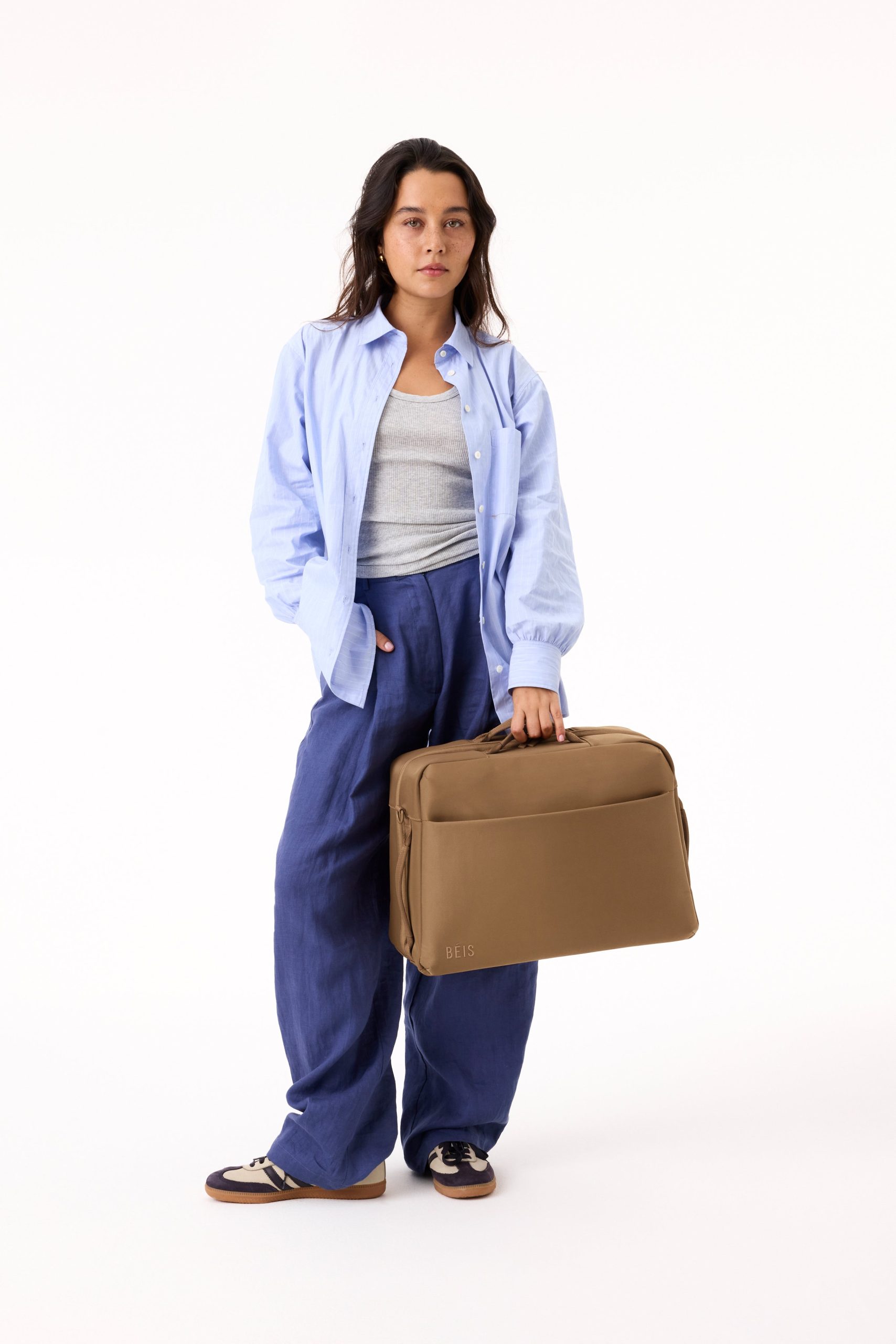 A sleek personal item with the packing power of a checked bag. this innovative duffle opens flat like a suitcase for effortless organization. Spacious enough for all your essentials yet compact enough to fit under your seat. it features a padded laptop compartment. webbing handles. and a removable crossbody strap. The ultimate blend of style and convenience has landed.